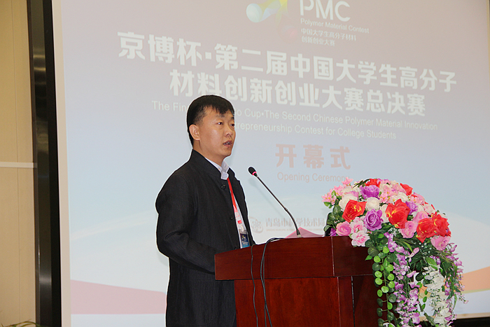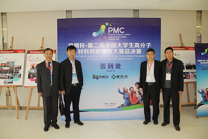 2014年10月14日“京博杯·第二届中国大学生高分子材料创新创业大赛”(以下简称京博杯·第二届PMC大赛)在青岛怡维怡橡胶研究院4楼正式开幕。山东京博石油化工有限公司总经理栾总、山东京博石油化工有限公司橡胶分公司副总经理任总、黄河三角洲京博化工研究院总经理姚总、研究院功能材料研究所刘所长四位领导参与整个活动。
